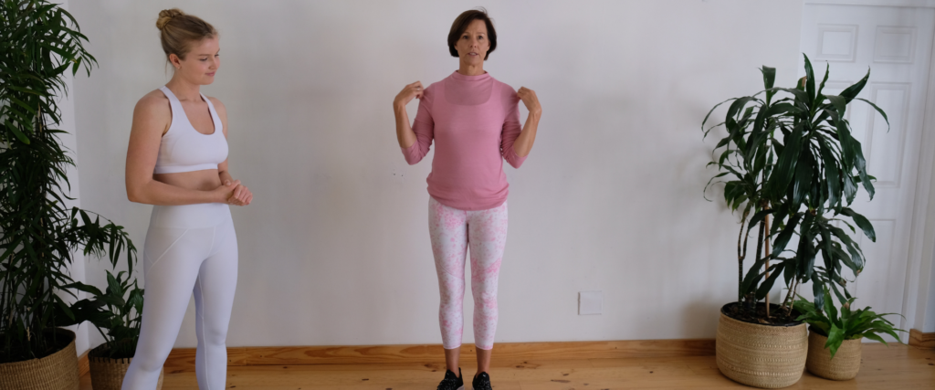 Centring is using the centre of the body or powerhouse to perform all the exercises. “the theory (is)that almost all of our strength and physical control originates with solid stomach muscles. But it all focuses on the box formed by the points of your shoulders and your hips. The area in that box is your powerhouse — that’s where all your power comes from.- Romana Kryzanowska. In every exercise, we attempt to keep the stomach scooped in and up and strengthen both the stomach and back muscles to create a strong and stable centre.
